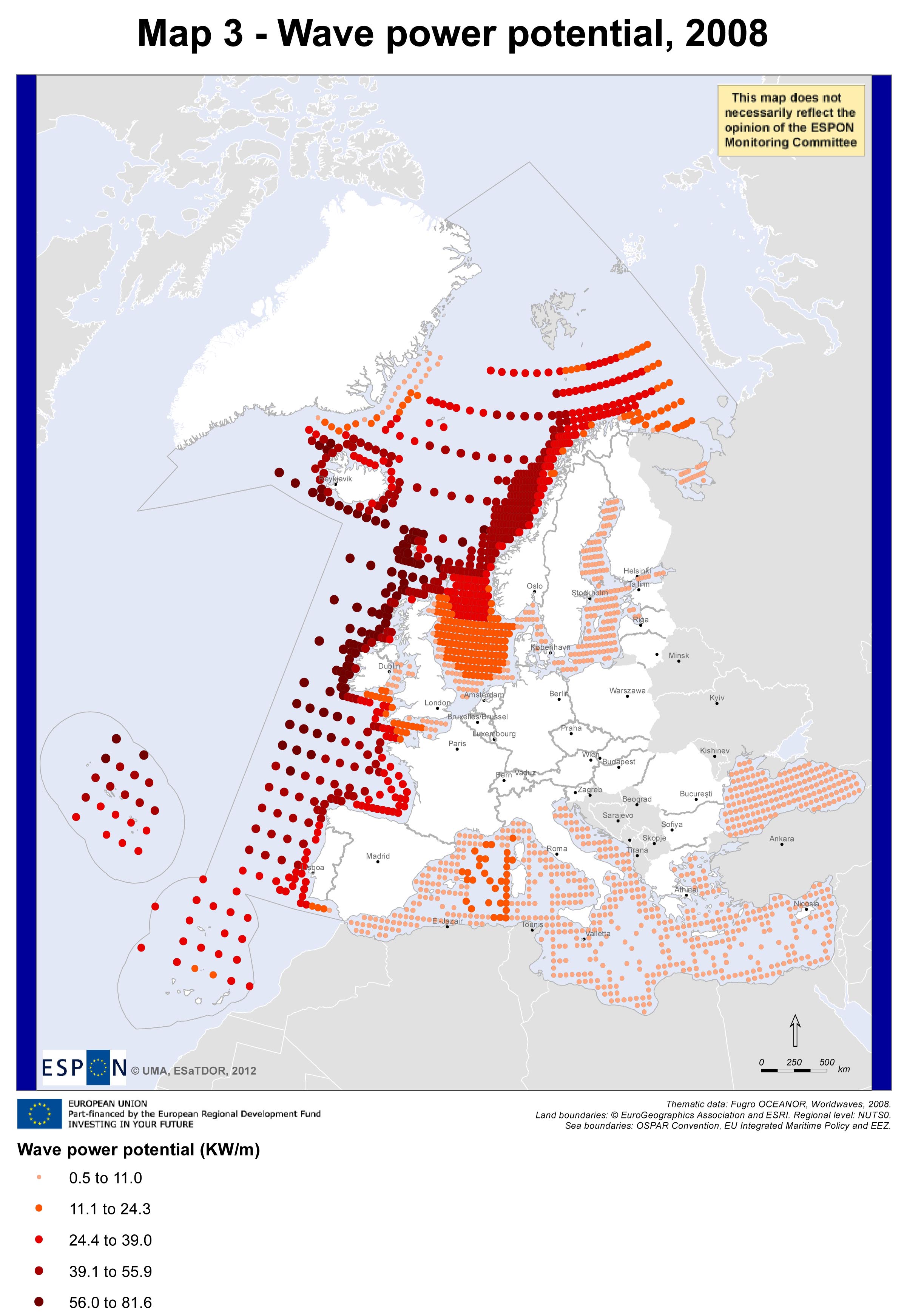 A recent ESPON briefing paper looks at the progress European territories are making towards the achievement of the targets for smart, sustainable and inclusive growth set out in the Europe 2020 Strategy. The analysis shows that performance in relation to the targets is strongest in Central and Northern Europe, with Scotland sitting alongside top-performing countries such as Finland, Sweden, Ireland and Estonia. The paper also highlights the fact that countries exposed to the Atlantic Ocean have strong unrealised potential for harnessing wave power.